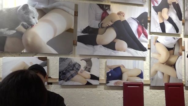 Video: Quán cà phê được trang trí hàng loạt bức ảnh về cặp đùi của người thiếu nữ.