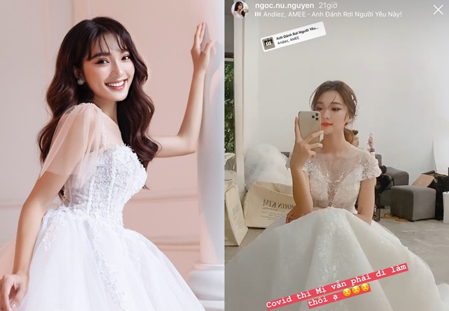 Gần đây, Ngọc Nữ khiến fan “lụi tim” khi đăng hình xinh lung linh trong bộ áo cưới với caption: “Covid thì Mị vẫn phải đi làm thôi ạ”. Cứ ngỡ cô nàng lên xe bông nhưng ai ngờ chỉ là hình khi cô đi chụp cho một thương hiệu áo cưới nào đó. Tuy đã đường ai nấy đi với Phan Văn Đức được một thời gian khá lâu, nhưng NHM vẫn giành rất nhiều tình cảm cho cô nàng Hoa hậu này. Ngọc nữ từng được đánh giá là một trong những người yêu xinh đẹp nhất của các chàng cầu thủ Việt Nam.