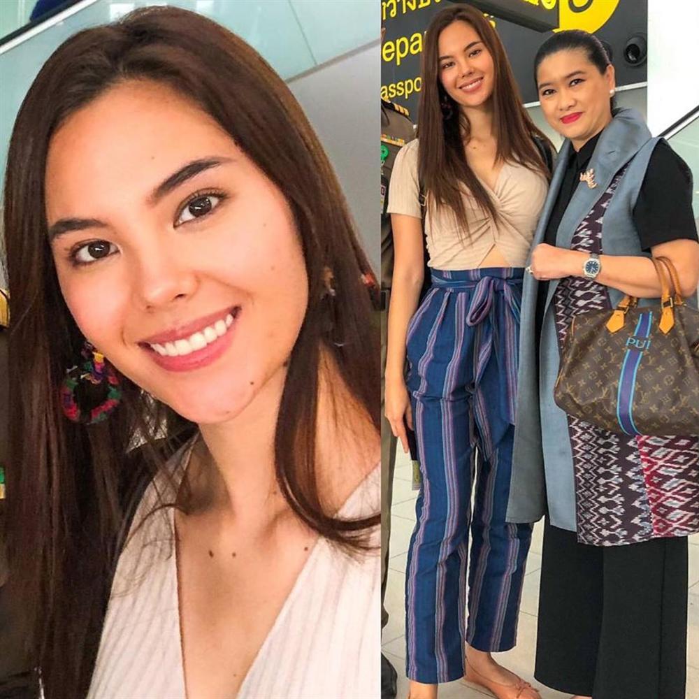 Hình ảnh Catriona Gray chụp cùng siêu mẫu Thái Lan Lukkade và tân Hoa hậu Hoàn vũ Thái Lan 2019 - Paweensuda Drouin. Nhiều người không hiểu sao cô lại diện chiếc đầm cổ yếm đã xấu về màu sắc lại còn rộng thùng thình “dìm” dáng triệt để.
