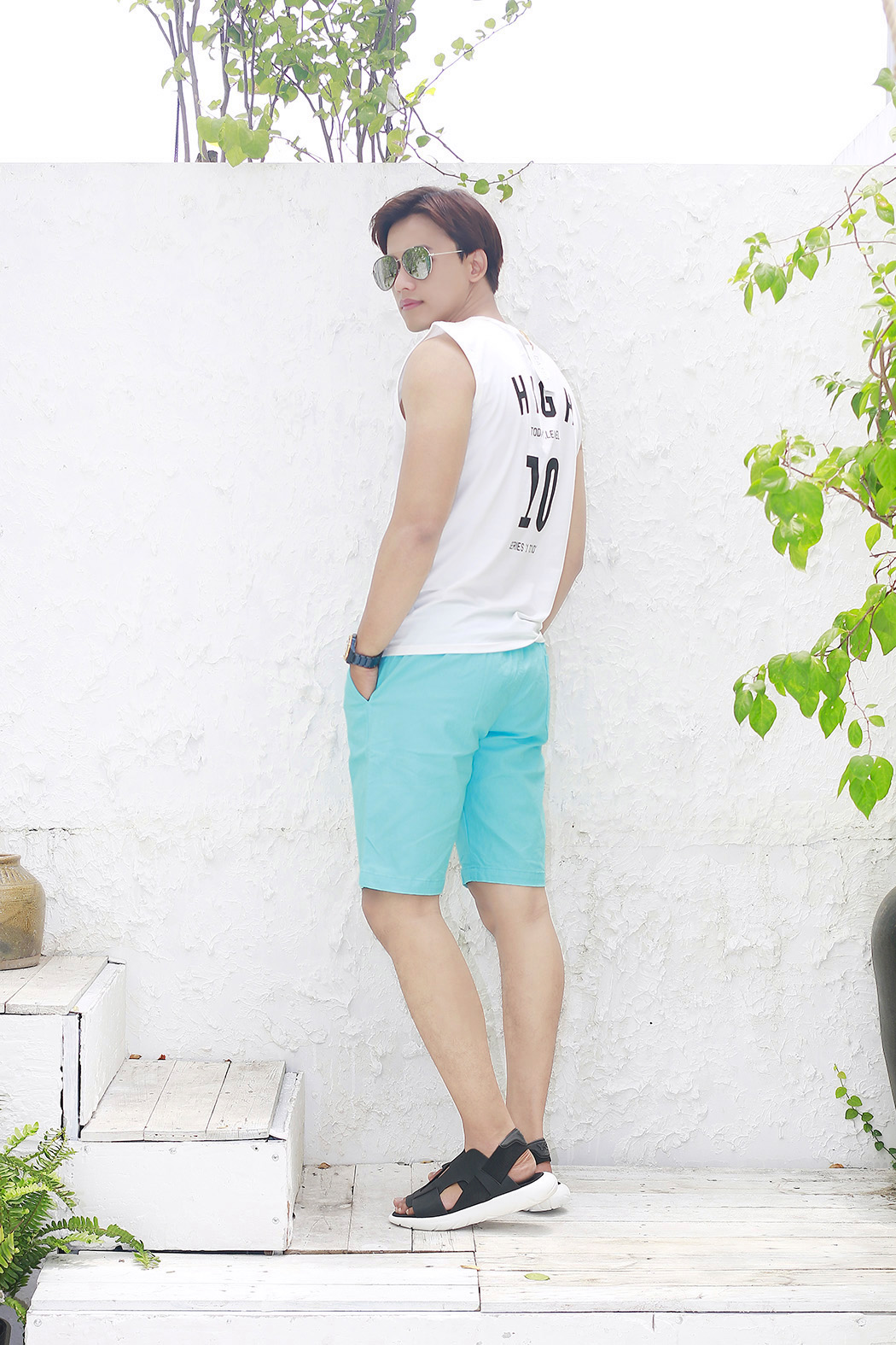 Với những anh chàng có body sắn chắc như Mai Tài Phến thì short kaki và áo sát nách là sự kết hợp vô cùng ăn ý để các cô nàng không thể rời mắt.