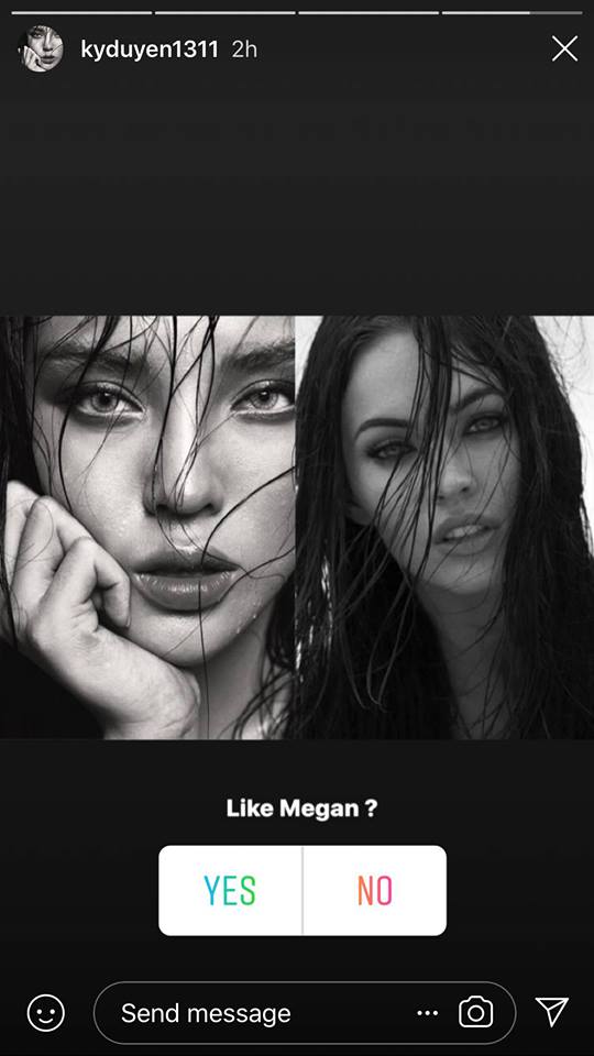 Tuy nhiên, không vui vẻ như bị so sánh với Megan Fox, khi được ví có nhiều nét tương đồng với Bảo Thy, nàng hậu cá tính đã thẳn thắn phản pháo bằng 1 bức ảnh ghép tìm điểm giống nhau của cả hai.