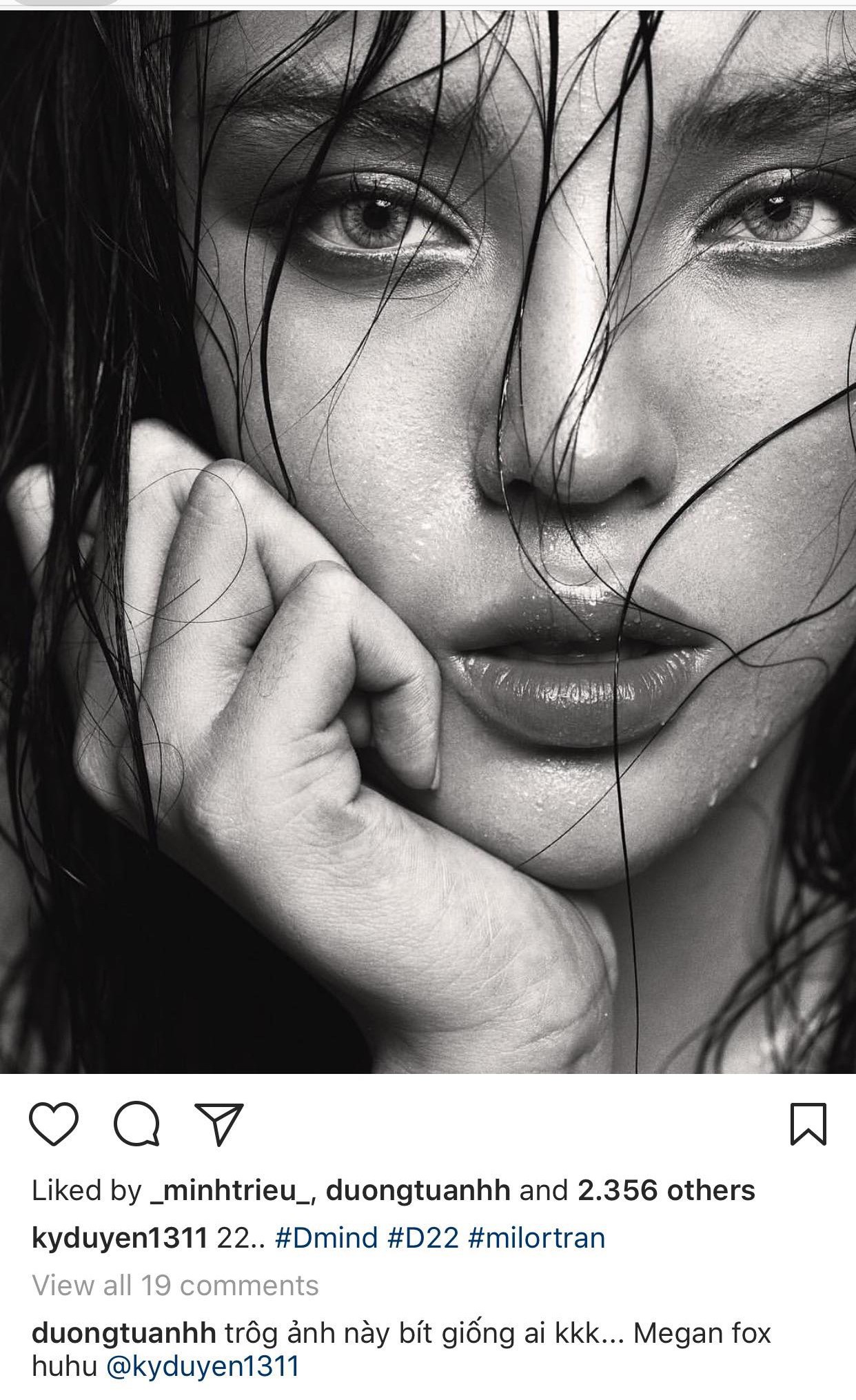 Điển hình là bức ảnh 'ướt át” được cô chia sẻ mới đây trên instagram đã nhận về bão like bởi sự cuốn hút chết người. Đến cá Á hậu Tú Anh còn “ganh tị” nhẹ nhàng là Duyên “trông giống Megan Fox” đủ biết thần thái lên hình của nàng hậu xuất thần thế nào.