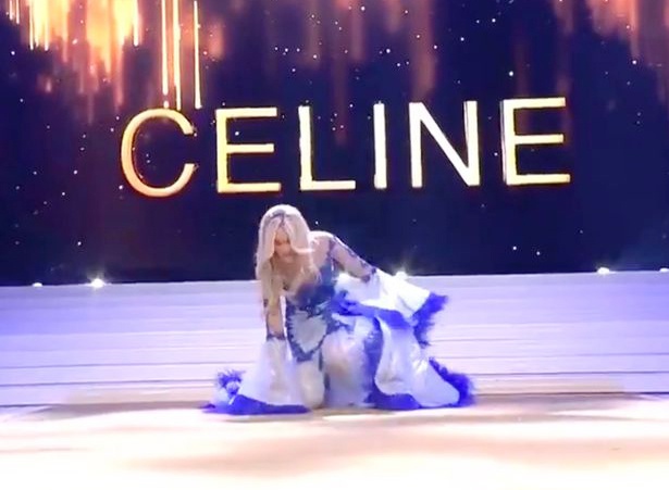 Tuy nhiên trong đêm thi, tân Hoa hậu đã gặp một sự cố hy hữu. Cụ thể trong phần thi trang phục dạ hội, bước xuống bậc tam cấp, Céline Van Outysel đã bị vấp ngã. Điều đáng nói cú ngã đã khiến chiếc áo ngực văng hẳn ra bên ngoài.
