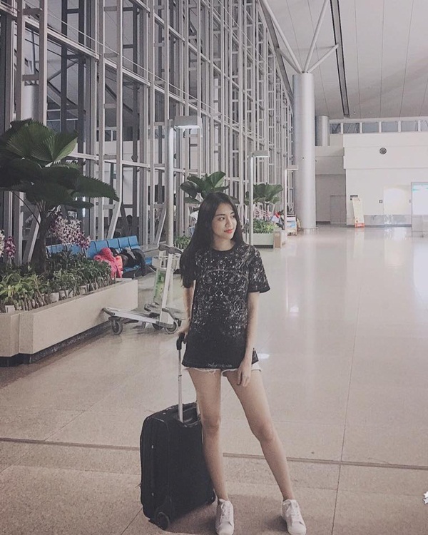 Thời trang sân bay cũng không quên khoe chân dài, tràn đầy năng lượng với áo thun oversized mix cùng sneaker. Cả set đồ toát lên vẻ đẹp năng động khó lòng rời mắt.