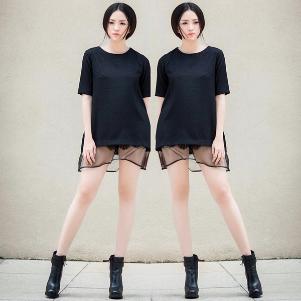 All-black với chiếc áo thun hòa phối cùng quần short ren và đôi boots cá tính chính là yếu tố cân bằng để set đồ không trở nên quá “bánh bèo”.