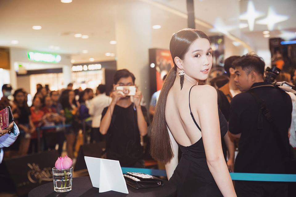 Dễ dàng nhận thấy ở góc máy nghiêng người Ngọc Trinh nổi bật nhất trong thiết kế hở lưng táo bạo.