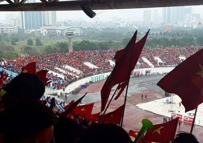 Cổ động viên Việt Nam nhuộm đỏ khán đài sân vận động.