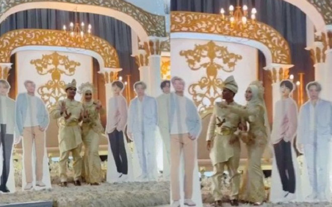 Theo đó, cô dâu Ena Izzati Jamri (25 tuổi) cho biết, việc mời các thành viên nhóm nhạc nổi tiếng đến dự đám cưới có vẻ là điều quá xa vời. Nhưng bản thân lại rất thích nhóm nhạc và hi vọng có một đám cưới đáng nhớ nên Jamri đã làm những tấm bìa cứng cắt hình các thành viên Jin, Suga, J-Hope, RM, Jimin, V và Jungkook và đặt trên sân khấu đám cưới.