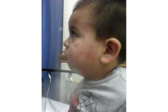 Cậu bé 3 tuổi bị rệp cắn khắp người. Ảnh: Brian Virag