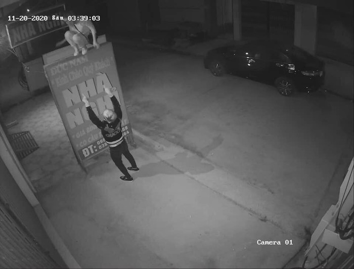 Những hình ảnh được đăng tải trên mạng xã hội cho thấy, nam thanh niên trèo xuống trước rồi giơ tay ra đỡ bạn gái đang đứng trên biển quảng cáo nhà nghỉ. Cả hai “tẩu thoát” trót lọt rồi nhanh chóng rời khỏi đó.