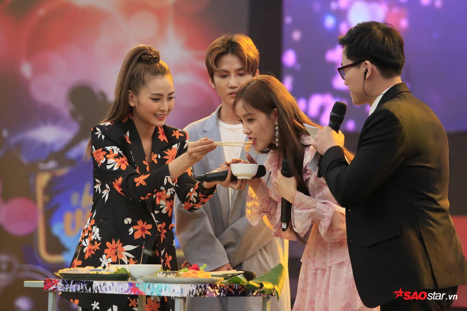 Cô nàng còn được MC Mù Tạt “chăm bẵm” từng chút một như thế này đây.