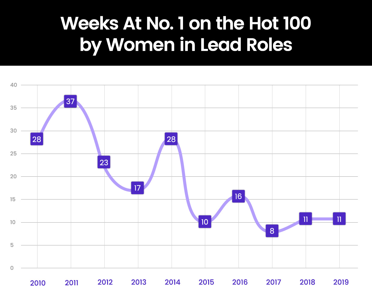 Trong thập kỉ 2010s này, các nữ nghệ sĩ đã giành ưu thế trên BXH Billboard Hot 100 trong 4 năm: 2010, 2011, 2012 và 2014; trong khi các đồng nghiệp nam chiếm thế thượng phong trong vòng 5 năm: 2013, 2015, 2016, 2017, 2018. Năm 2019 chỉ vừa mới bắt đầu nhưng cán cân đã có chiều hướng tích cực hơn nghiêng về các nữ nghệ sĩ trong khi các nam nghệ sĩ từ đầu năm đến nay vẫn chưa có bất kì hoạt động nào đủ nổi bật. Liệu kết thúc năm 2019, phụ nữ sẽ một lần nữa vươn lên, san bằng tỉ số với các nam đồng nghiệp? Với tình hình hiện tại, câu trả lời chắc chắn là có.