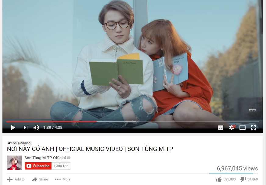 Không nằm ngoài dự đoán, MV Nơi này có anh của Sơn Tùng M-TP đã cán mốc 7 triệu lượt xem sau 1 ngày phát hành. Với thành tích này, Nơi này có anh chính thức phá kỷ lục của Lạc trôi với con số 5 triệu lượt xem sau 24h ra mắt. Chưa dừng lại ở đó, lượng view vẫn đang tăng lên với tốc độ chóng mặt.