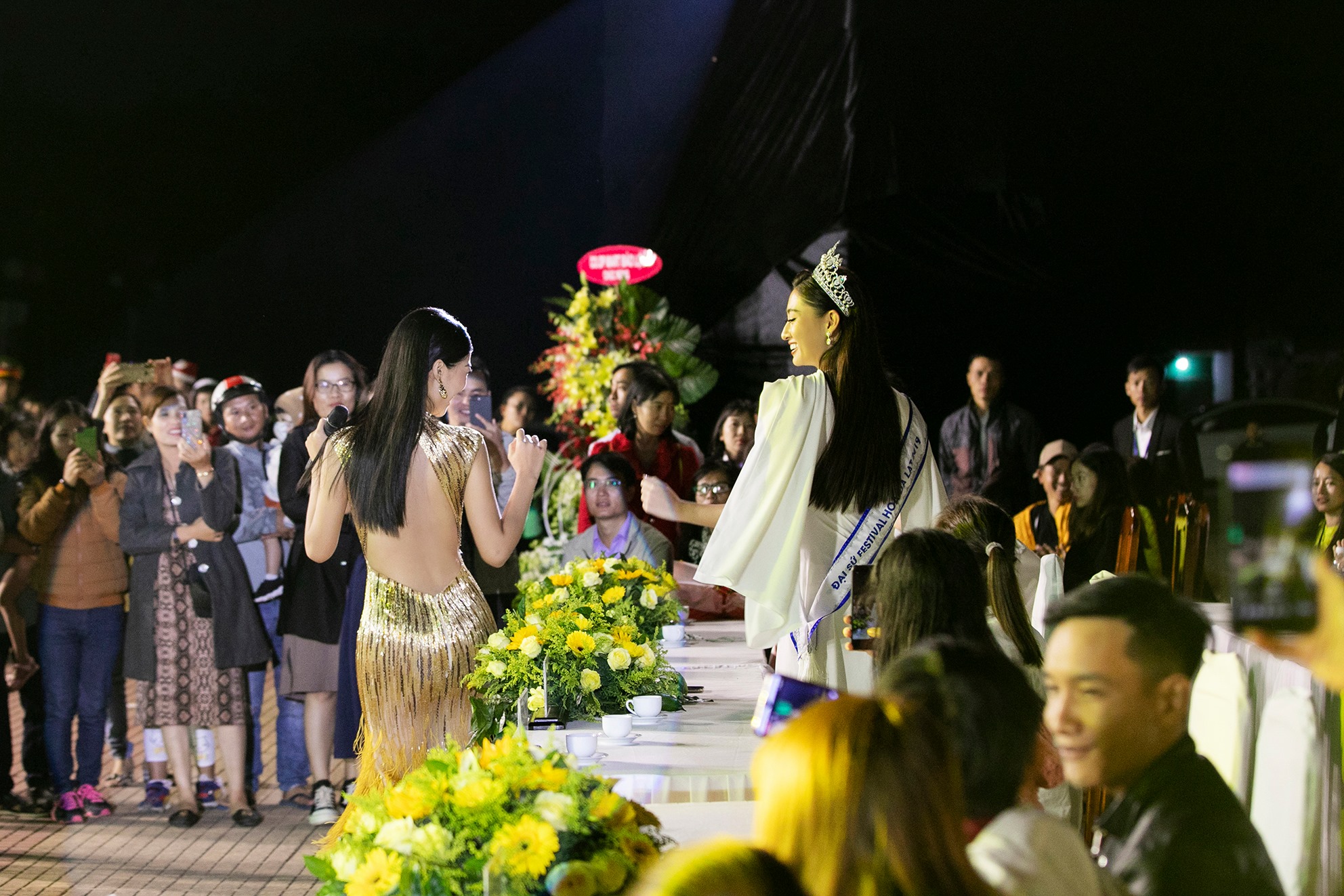 Đặc biệt khoảnh khắc hai cô nàng tương tác một cách đầy đáng yêu khi tiết mục đang diễn ra chắc chắn khiến nhiều người không khỏi thích thú. Lương Thùy Linh tỏ ra vô cùng phấn khích trước sân khấu trình diễn sôi động của người đồng nghiệp, cô nàng không ngừng nhún nhảy theo giai điệu của bài hát với biểu cảm đầy đáng yêu.
