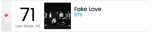 Còn Fake Love tạm rời xuống vị trí số 71 sau 4 tuần.