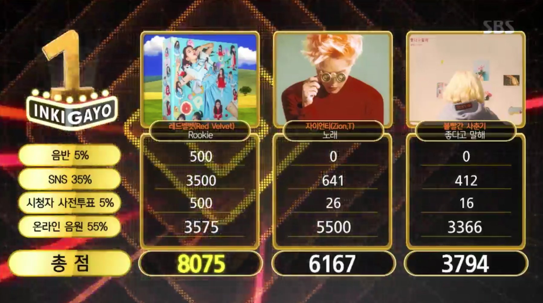 Mặc dù thất thế trước Zion.T trên các trang nhạc số những Red Velvet luôn đánh bại đàn anh ở điểm album và mạng xã hội để giành phần thắng chung cuộc.
