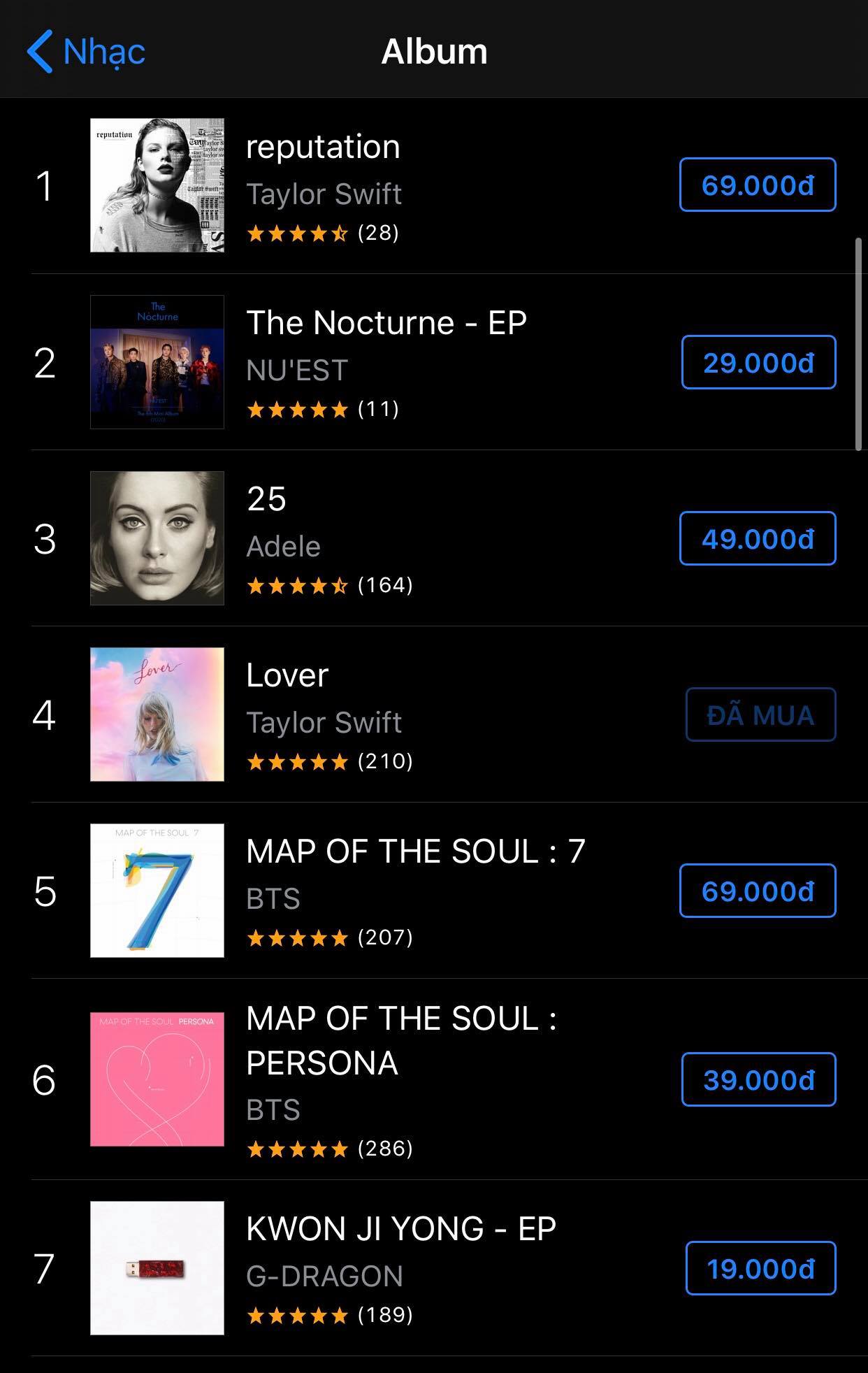 Bên cạnh reputation thì “người chị em” Lover và 1989 cũng đang “hoành hành” trên BXH Itunes Việt Nam.