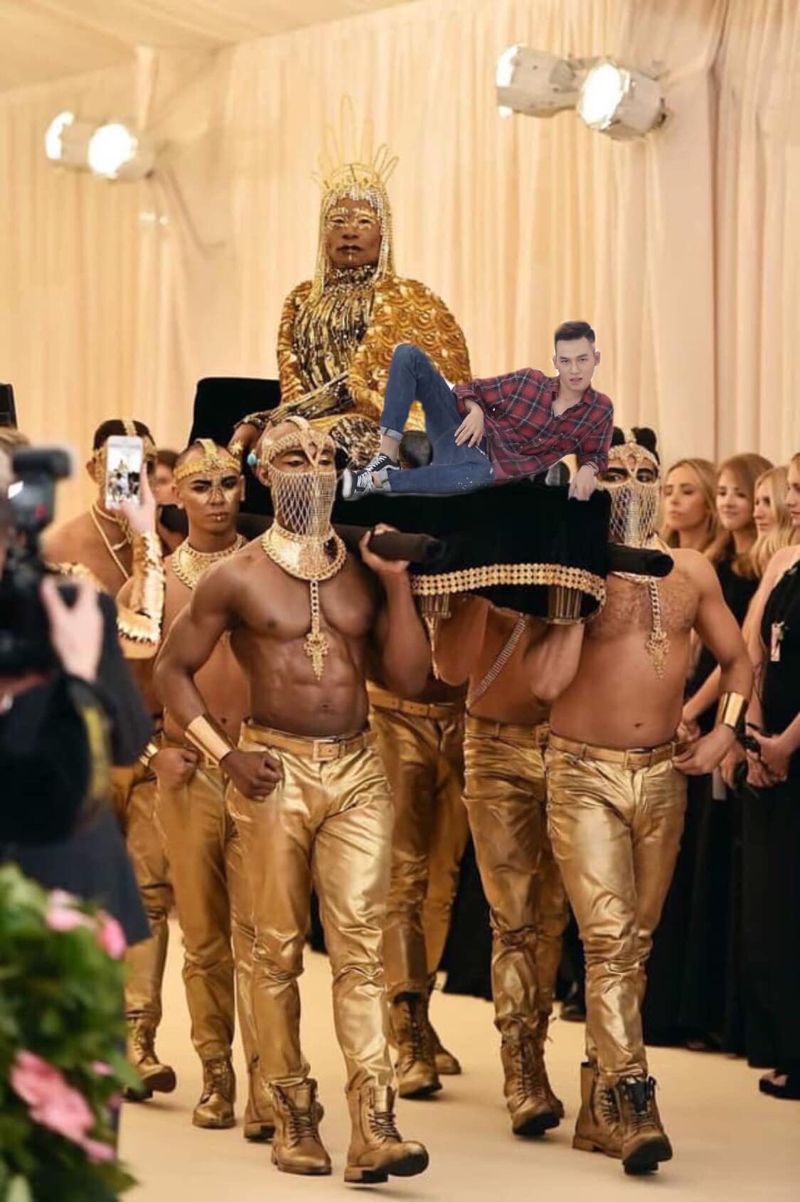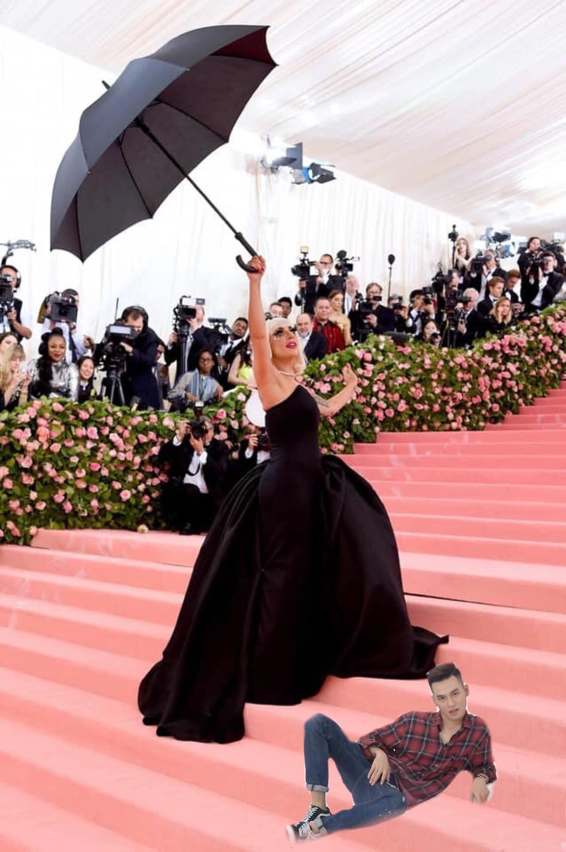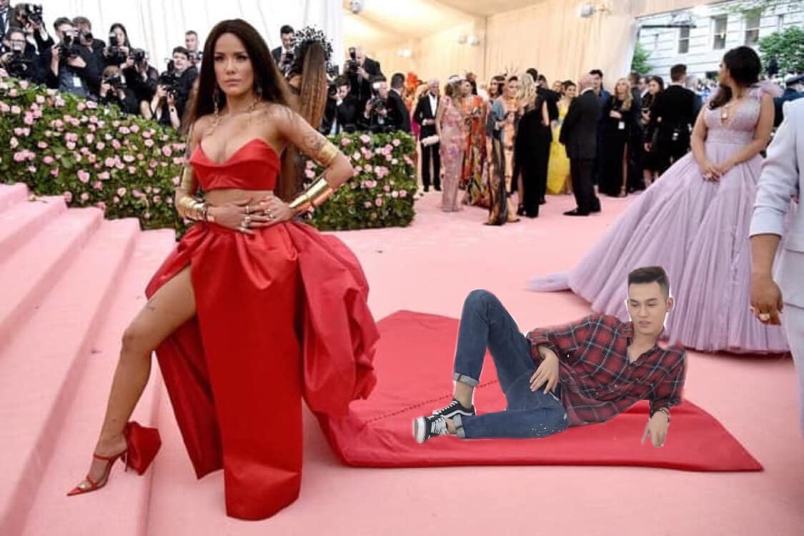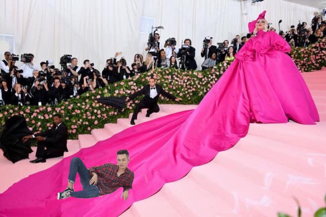 Cụ thể, một trang fanpage chuyên chế ảnh của Ali Hoàng Dương đã đăng tải một loạt bức ảnh ghép anh chàng tạo dáng trên thảm đỏ Met Gala 2019 cùng loạt sao US-UK đình đám. Điều đặc biệt khiến người hâm mộ phì cười là tạo dáng của nam ca sĩ trong các bức ảnh: tất cả đều một tư thế nằm. Từ nằm trên váy của Lady Gaga, nằm trên kiệu của Billy Porter hay nằm lạc lõng trên bậc tam cấp đều được “fanti” của anh chàng chế triệt để. Cùng chiêm ngưỡng loạt ảnh Ali Hoàng Dương “tạo dáng” lầy lội tại thảm đỏ Met Gala 2019 đảm bảo sẽ khiến bạn phải “bó tay” trước độ lầy của cư dân mạng: