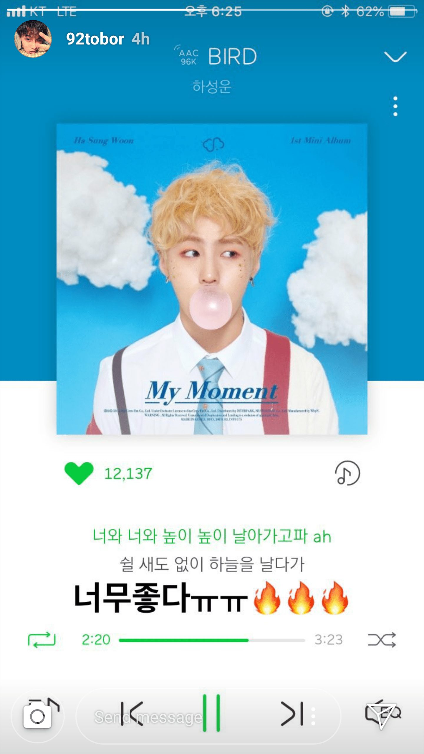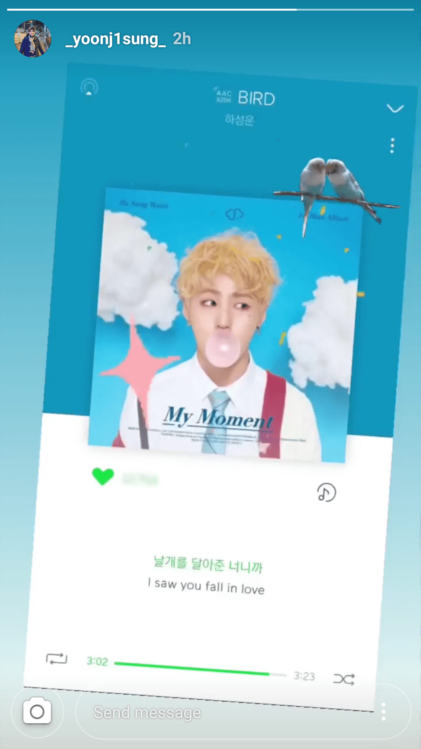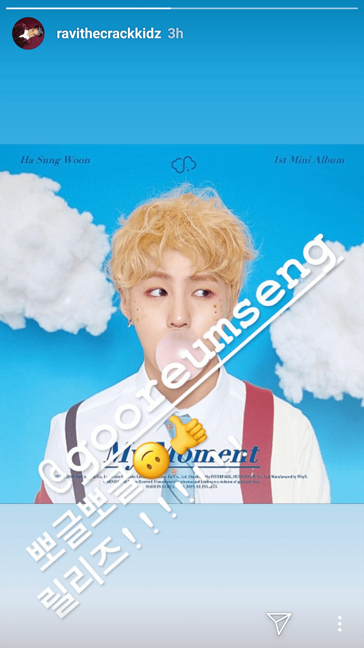 Ngày 28/2 vừa qua, cựu thành viên WANNA ONE Ha Sung Woon đã phát hành album với tên gọi là My Moment cùng MV ca khúc chủ đề BIRD, chính thức trở lại đường đua Kpop với vai trò nghệ sĩ solo. Khác biệt với cá tính âm nhạc trước đây, trở lại lần này, Ha Sung Woon gây ấn tượng với phong cách âm nhạc đáng yêu, trẻ trung, đầy màu sắc. Điều đặc biệt là sau khi BIRD được lên sóng, thành viên Jimin (BTS) - cũng đã chia sẻ hình ảnh MV cùng lời động viên đến người bạn thân Ha Sung Woon như sau: “Em sẽ cổ vũ cho anh. Anh đã làm việc vô cùng chăm chỉ”.