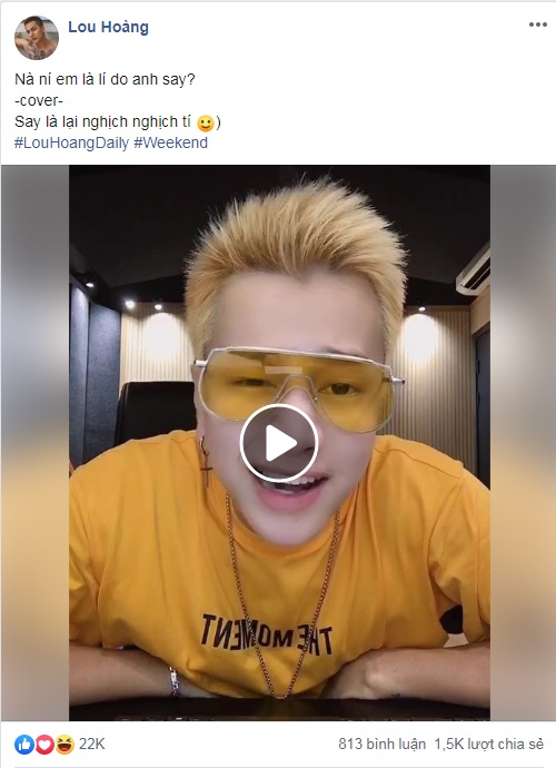 Dòng trạng thái và đoạn clip cover được Lou Hoàng chia sẻ trên trang cá nhân.