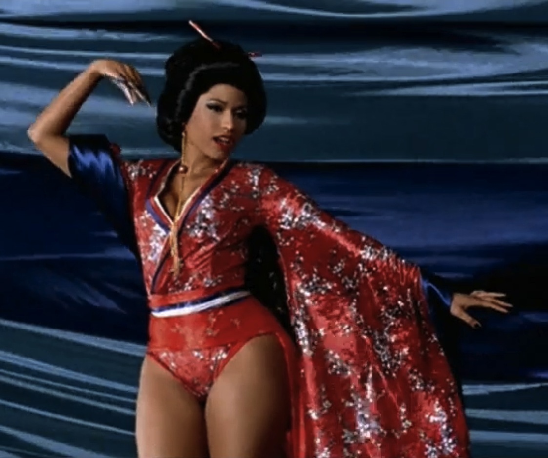 Trong địa phận của làng rap cũng có một đơn cử từng làm MV có sự xuất hiện của trang phục truyền thống Á Đông., còn ai khác ngoài nữ hoàng nhạc rap Nicki Minaj với 2 MV Your Love và Chun-Li. Từ Nhật Bản đến cả Trung Quốc, Nicki Minaj quả thật cũng có duyên với châu Á lắm đấy chứ!
