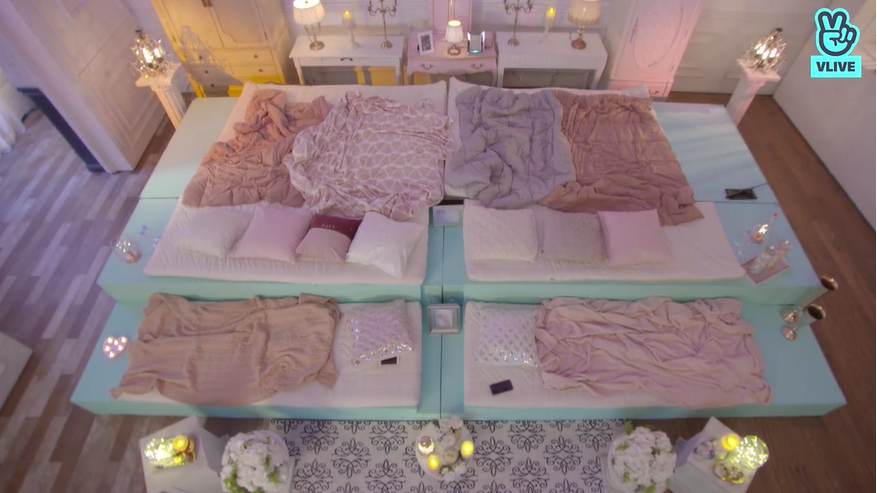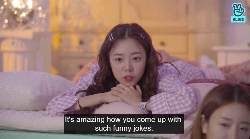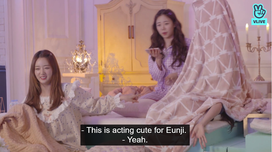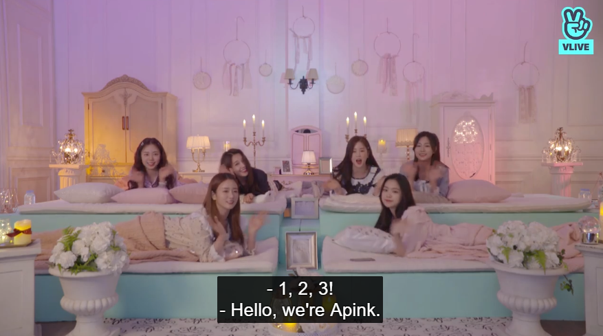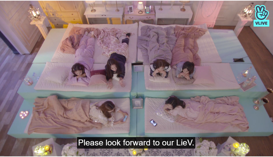 Không gian vô cùng quen thuộc cho mỗi chương trình LieV chính là căn phòng ngủ hồng phấn ngọt ngào. Các cô gái rạng rỡ thường ngày của APINK rất lạ lẫm trong những bộ đồ ngủ.