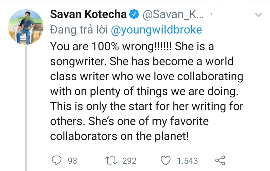 Và lời phản biện từ Savan Kotecha - Người cộng sự thân thiết của Ariana Grande.