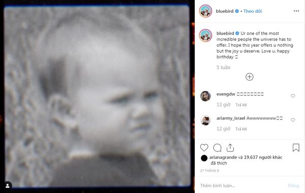 Trước đó, nhiều khán giả đã tinh ý nhận ra thời điểm diễn ra sinh nhật Ariana Grande, anh chàng Mikey Foster cũng đã đăng bức ảnh của cô nàng lúc còn bé xíu kèm dòng cap chúc mừng sinh nhật ngọt ngào: “Một trong số những người phi thường nhất của vũ trụ đã được sinh ra. Anh hy vọng rằng năm nay sẽ mang đến cho em không có gì ngoài những niềm vui mà em xứng đáng có được. Yêu em. Chúc mừng sinh nhật nhé!”.