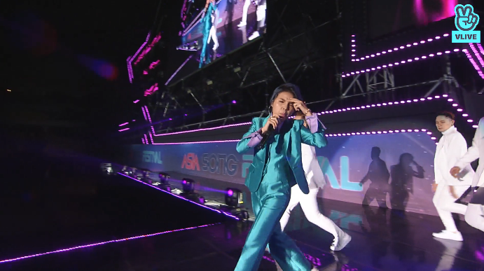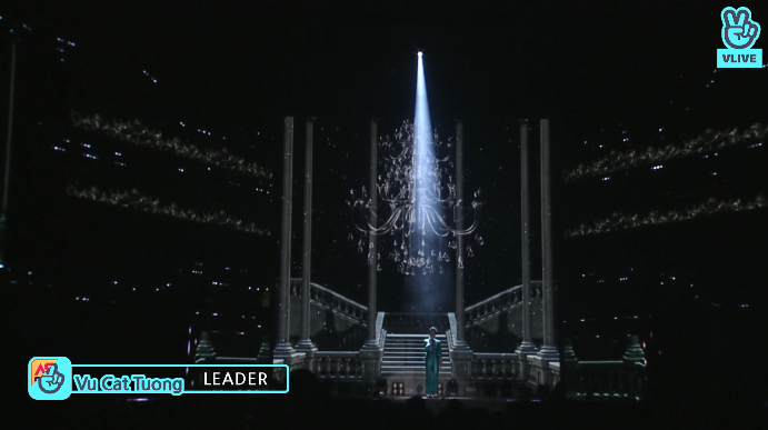 17:33 Vũ Cát Tường chính thức xuất hiện. Cả sân khấu dường như lặng đi khi nghe đại diện Việt Nam thể hiện trên sân khấu. Vũ Cát Tường còn trổ tài nói tiếng Hàn trên sân khấu với lời chào dành cho tất cả mọi người