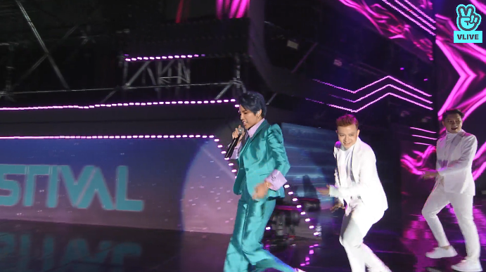 18:01 La Chí Tường vô cùng bảnh trai trên sân khấu. Anh chàng khoe vẻ đẹp “không tuổi” cũng như “đọ” màn nhảy nhót cùng với trưởng nhóm Super Junior. Sau đó ành chàng gửi tặng thêm khán giả ca khúc Happy High.