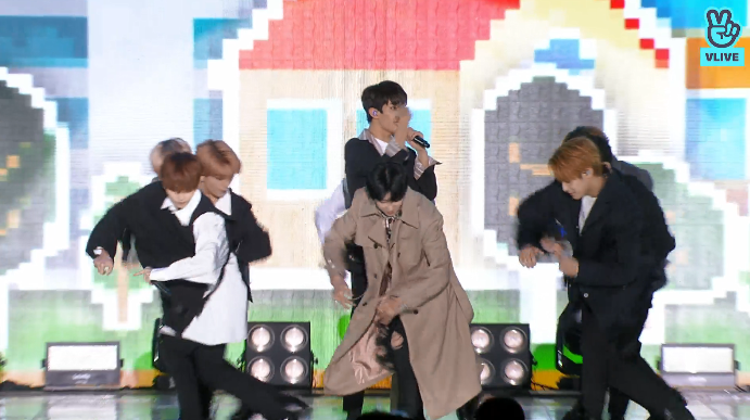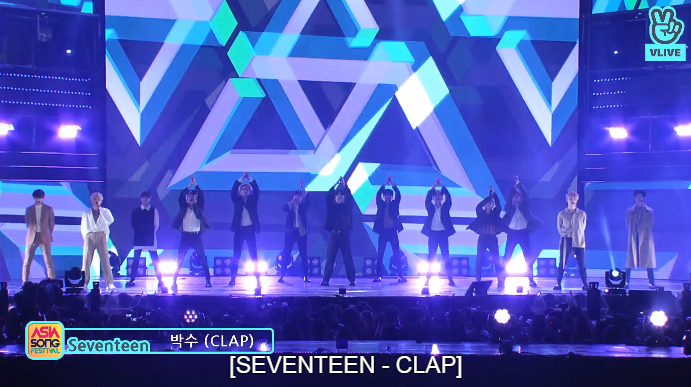 18:28 Seventeen “đem game” Oh My lên sân khấu. Sau đó, ca khúc Don't Wanna Cry, Clap cũng được vang lên, các chàng trai Seventeen khiến khán giả phải nhún nhảy theo.