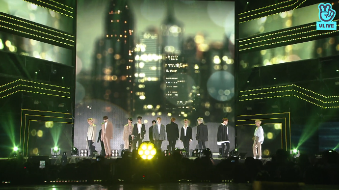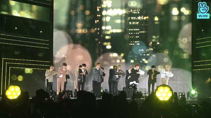 19:28 Wanna One xuất hiện và bản nhạc Light được vang lên