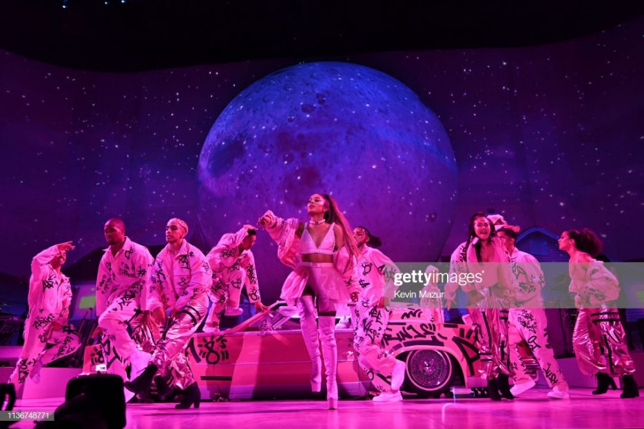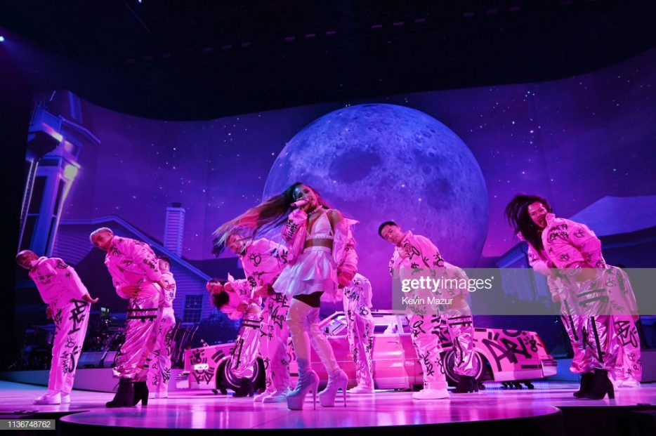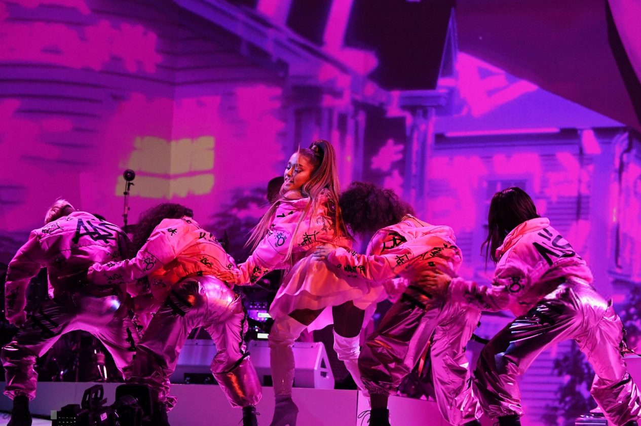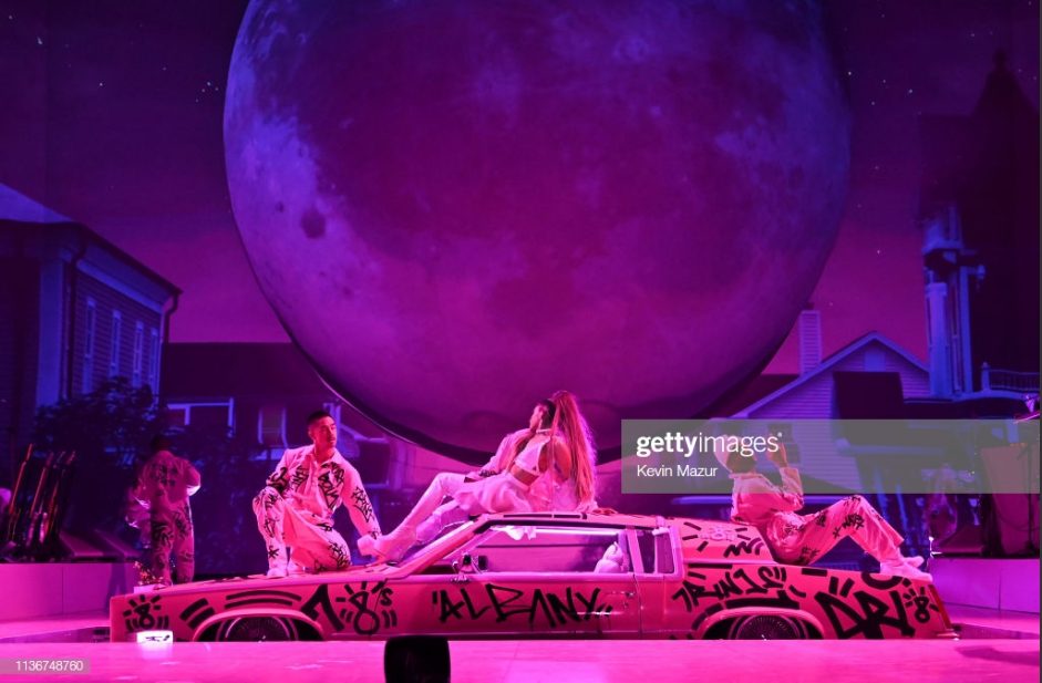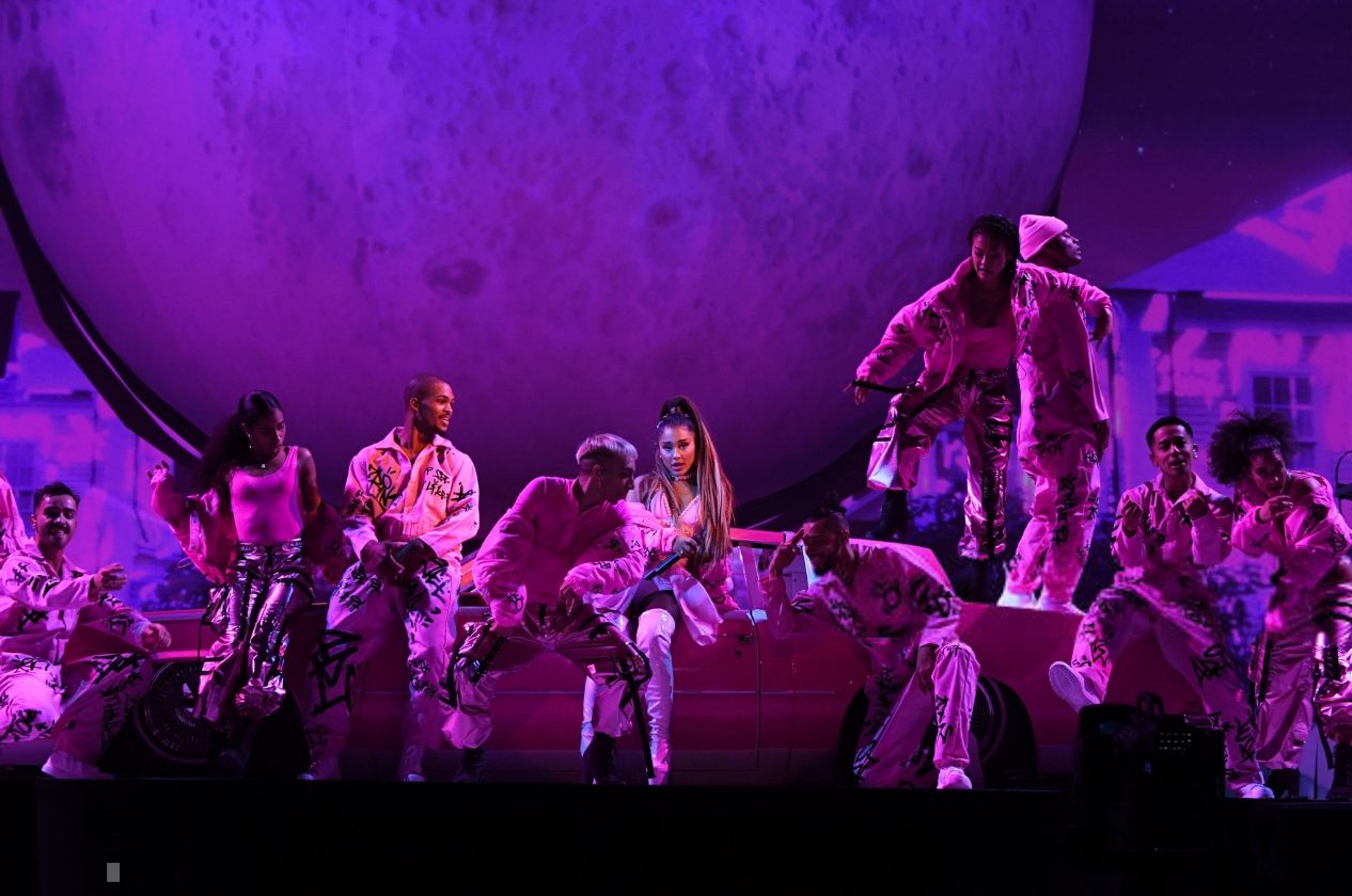 Với bộ trang phục và tạo hình quen thuộc từng xuất hiện trong MV, Ariana Grande xuất hiện và “chiếm trọn” sân khấu.
