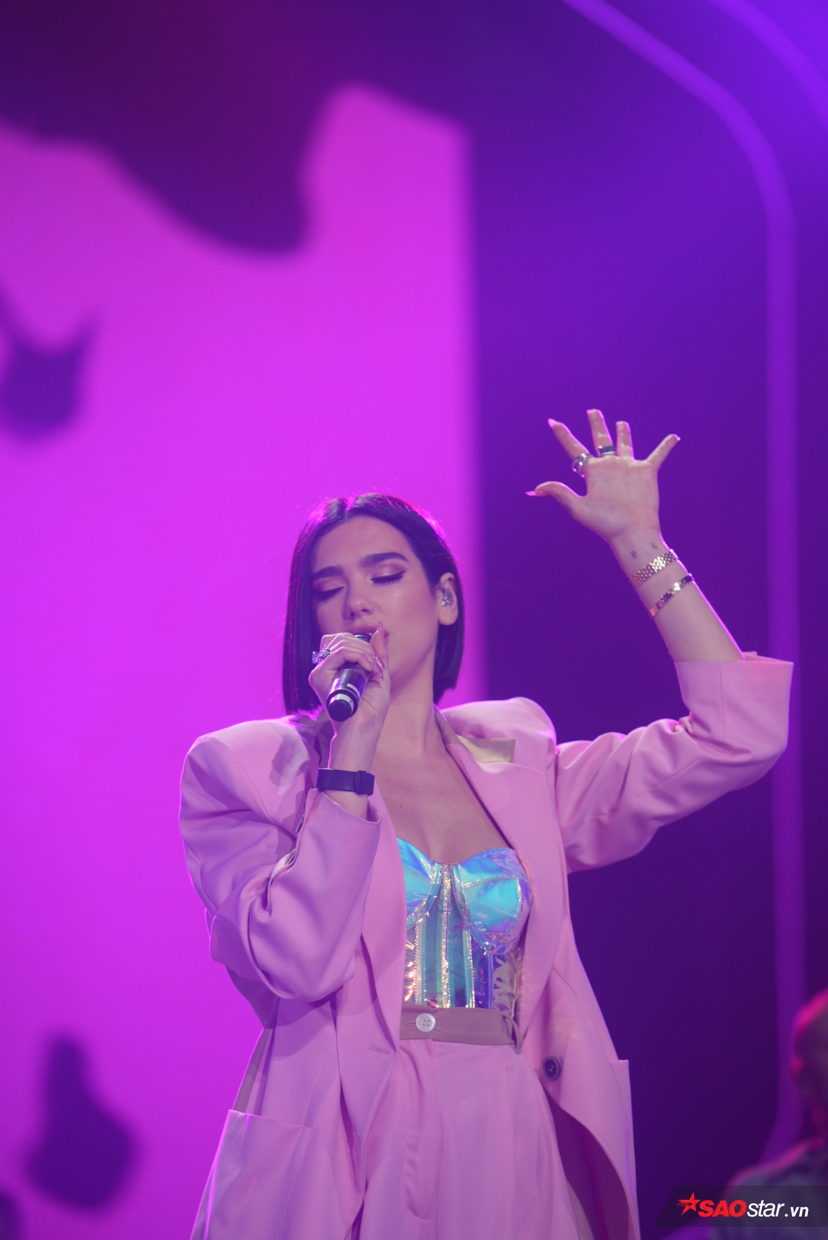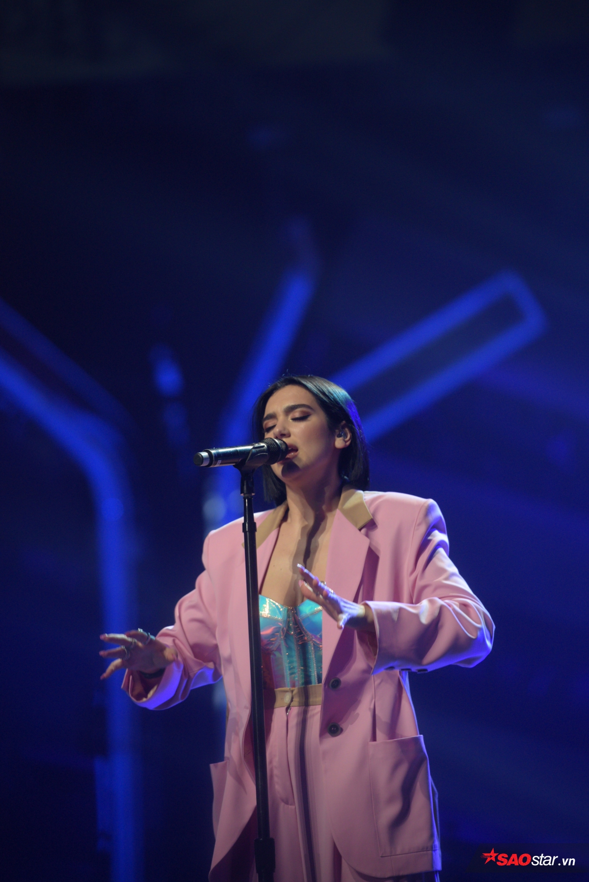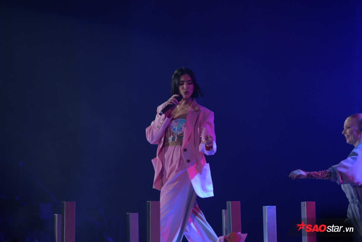 Phần trình diễn của Dua Lipa được bố trí thành 2 phần riêng biệt, khiến cho khán giả thêm phần chờ đợi xen giữa phần biểu diễn của các ca sĩ Đông Nam Á. Cô đã mang tất cả những ca khúc “hit” trong sự nghiệp của mình lên sân khấu tại thủ đô Jakarta ngày hôm nay.