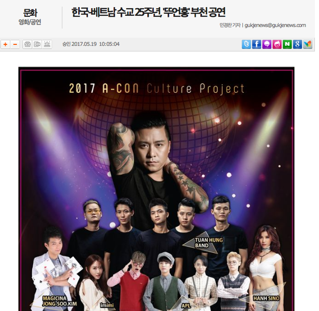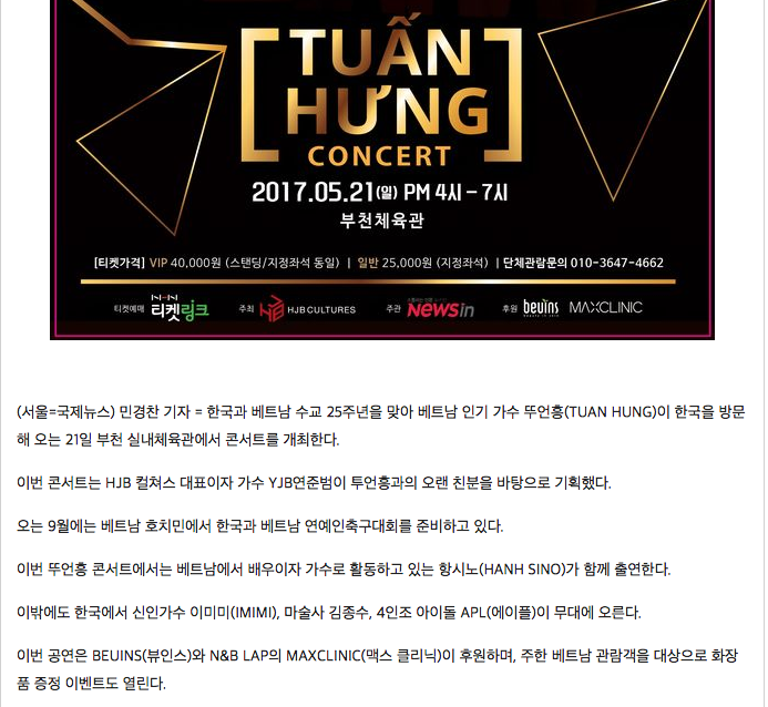 Báo Hàn đưa tin về liveshow của Tuấn Hưng.