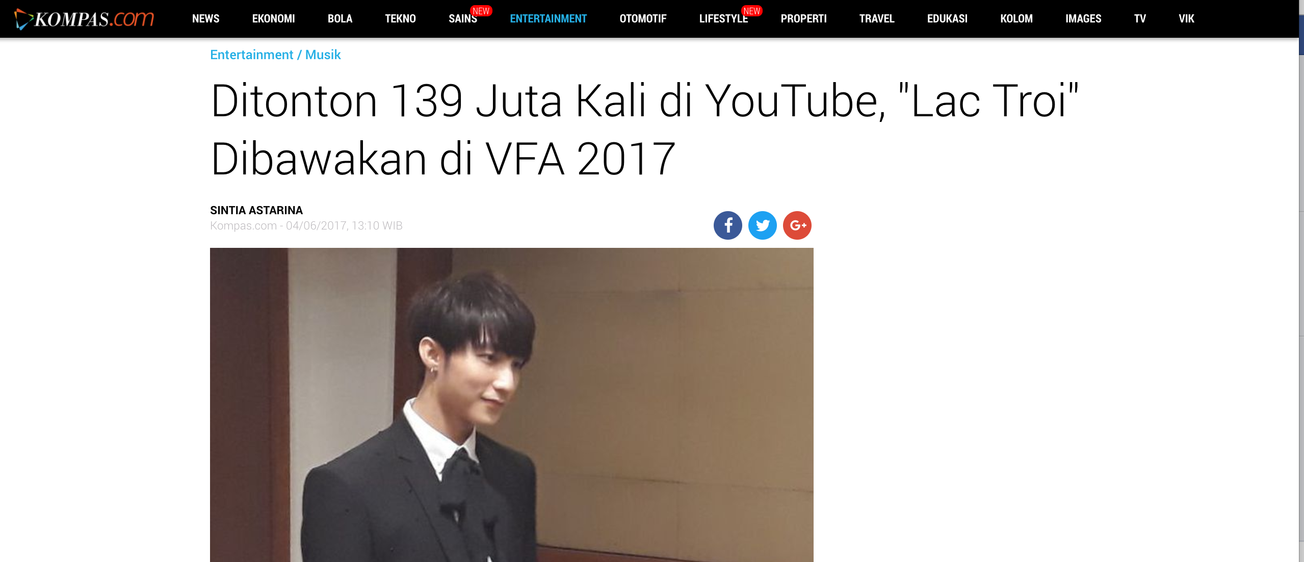 Mới sáng nay, một trang báo của Indonesia đã có hẳn bài viết riêng về Sơn Tùng M-TP sau phần trình diễn ấn tượng đêm 3/6 trên sân khấu sự kiện âm nhạc quốc tế Viral Fest Asia diễn ra tại Bangkok. Đây không phải là lần đầu tiên nam ca sĩ được nêu tên trên một trang tin nước ngoài, điều này phần nào cho thấy sức hút của anh đã bắt đầu lan rộng trên phạm vi châu Á.