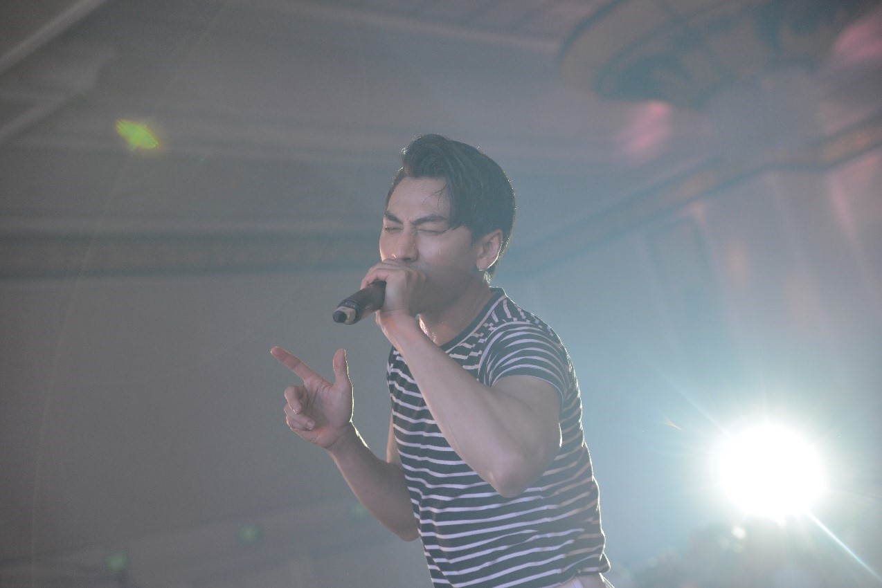 Sau khi gửi lời chào đến khán giả, Isaac bắt đầu phần trình diễn với ca khúc Bống Bống Bang Bang - ca khúc đã góp phần làm nên tên tuổi của nhóm 365daband.
