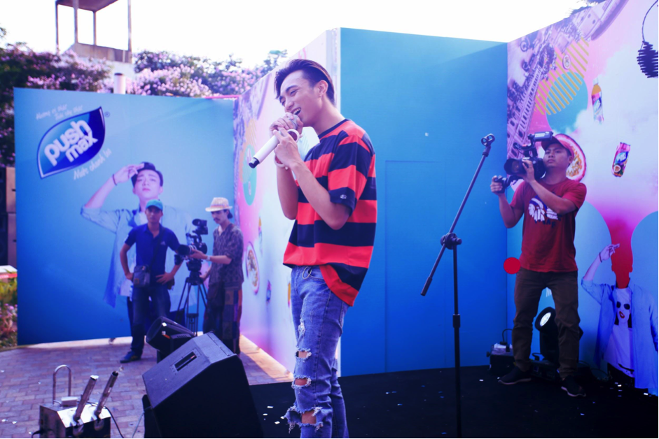 Trước đó, ngay từ sáng, các bạn học sinh, sinh viên đã bị “hút” vào trò chơi lạ mà hấp dẫn Thử thách hát cùng Soobin Hoàng Sơn với nhạc nền là bài hát mới của Soobin vừa với phần quà là một chai Pushmax Chanh Leo vừa giàu vitamin, vừa giúp giải nhiệt mùa hè.