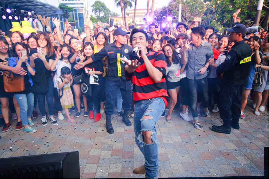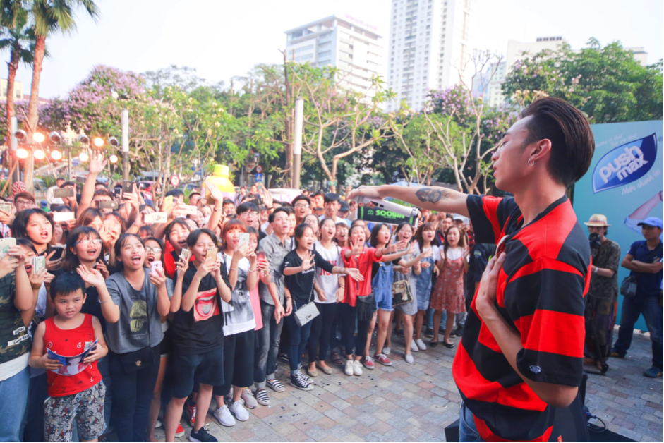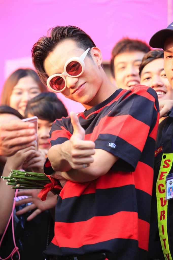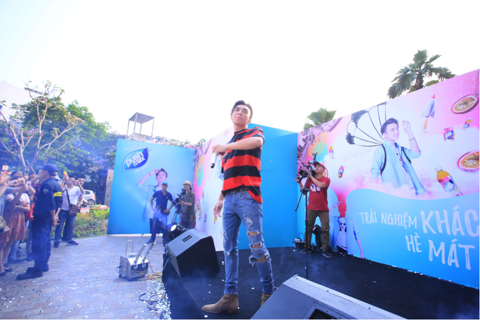 Các bạn fan nhanh chóng quây kín sân khấu của Á quân The Remix 2016. Dùng chính những chai nước chanh leo vừa thắng cuộc từ gian trò chơi bên cạnh làm lightstick, các bạn trẻ vẫy tay và nhiệt tình hát theo hit mới “Ngại gì khác biệt”, sau đó là Daydreams và hit đầu tay Phía sau một cô gái.