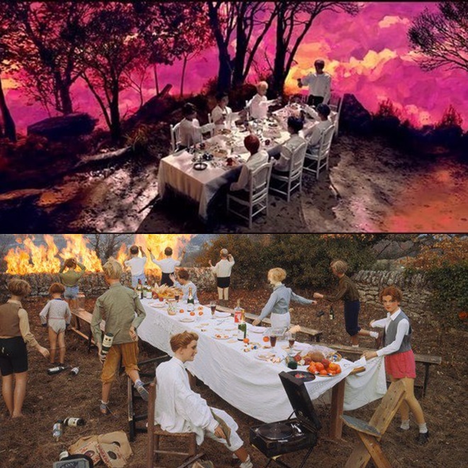 Vấn đề xoay quanh câu chuyện BTS dường như bị “cuốn vào” một cuộc chiến bản quyền với nhiếp ảnh gia người Pháp Bernard Faucon. Theo báo cáo, Bernard Faucon tuyên bố rằng một số hình ảnh trong album ảnh The Most Beautiful Moment in Life của nhóm phát hành năm 2016 và một số đoạn clip trong MV Blood Sweat & Tears đã sao chép nền và cấu trúc sản xuất trong các dự án của Faucon từ series tác phẩm Trại hè năm 1978, bao gồm các tác phẩm nghệ thuật mang tên: The Banquet.