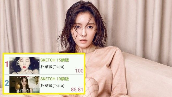 Cả 2 MV Sketch phiên bản 15+ và 19+ đều chiễm lĩnh 2 vị trí cao nhất trong BXH MV các ca khúc Hàn. Phía dưới Hyomin là nhiều tên tuổi như Chen (EXO), CNBLUE, AOA, Block B, FT Island.