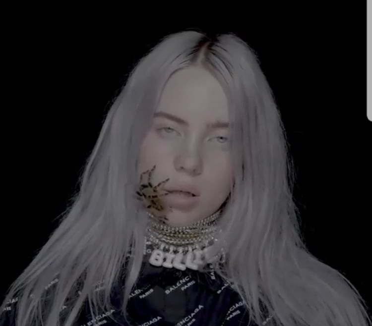 Đoạn clip gây sốt với hình ảnh Billie ngậm chú nhện trong miệng.