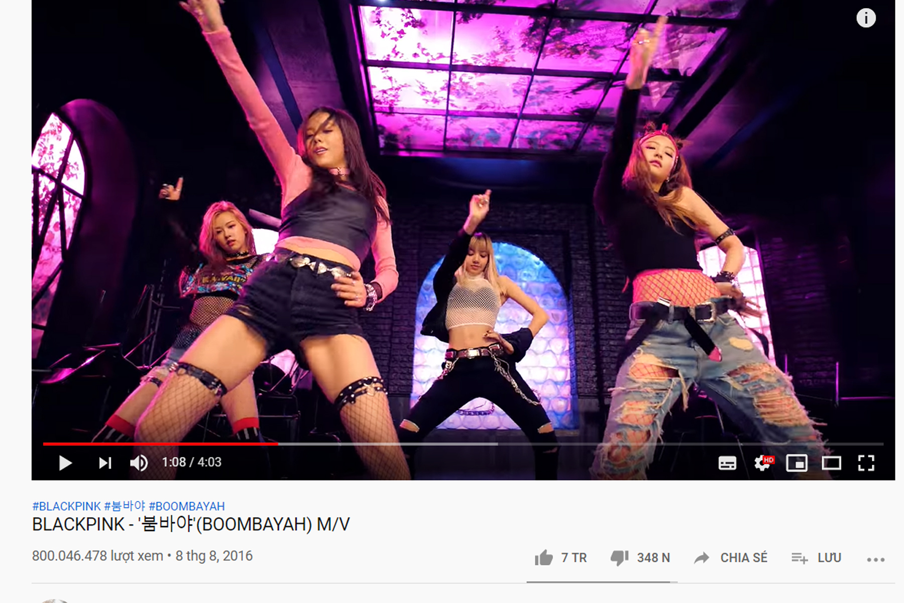 Mới đây, music video ca khúc Boombayah đã chính thức cán mốc 800 triệu lượt xem trên kênh youtube chính thức của BlackPink sau 4 năm phát hành. Đây là MV tiếp theo của nhóm nhạc nữ nhà YG đạt được cột mốc này - sau Ddu Du Ddu Du vào năm 2019. Nhờ thành tích mới này, BlackPink tiếp tục khẳng định được vị thế của mình trên nền tảng Youtube.
