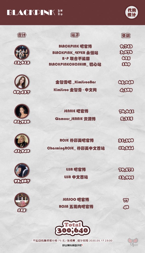 Chi tiết số lượng album mà các fanbase Trung Quốc đã gom được tính đến ngày 17/5.
