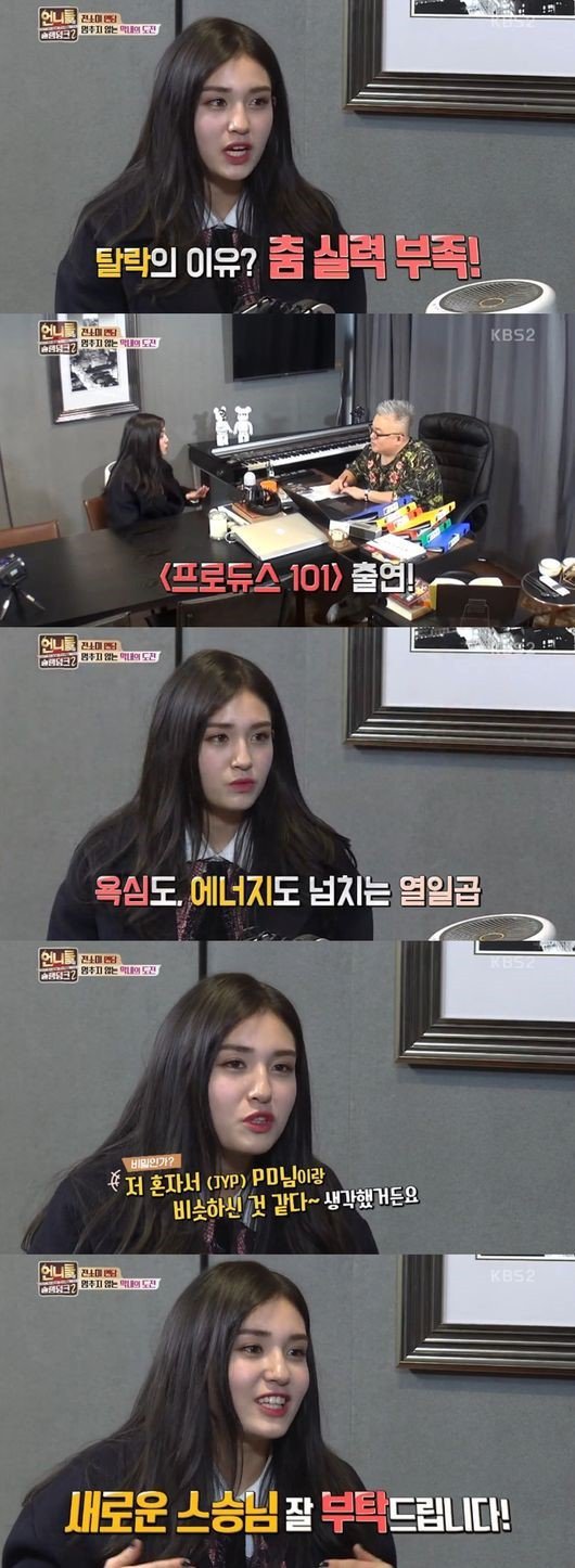 Cô nàng tiếp tục chia sẻ: ‘’Em không muốn nghe điều đó thêm lần nữa nên đã tập luyện chăm chỉ khi tham gia Produce 101. Dù sợ hãi nhưng cảm giác như mình vẫn phải làm điều gì đó khi có cơ hội. Em nghĩ em là kiểu người sẽ làm bằng được những gì mình muốn cho dù mất bao nhiêu thời gian đi nữa.’’