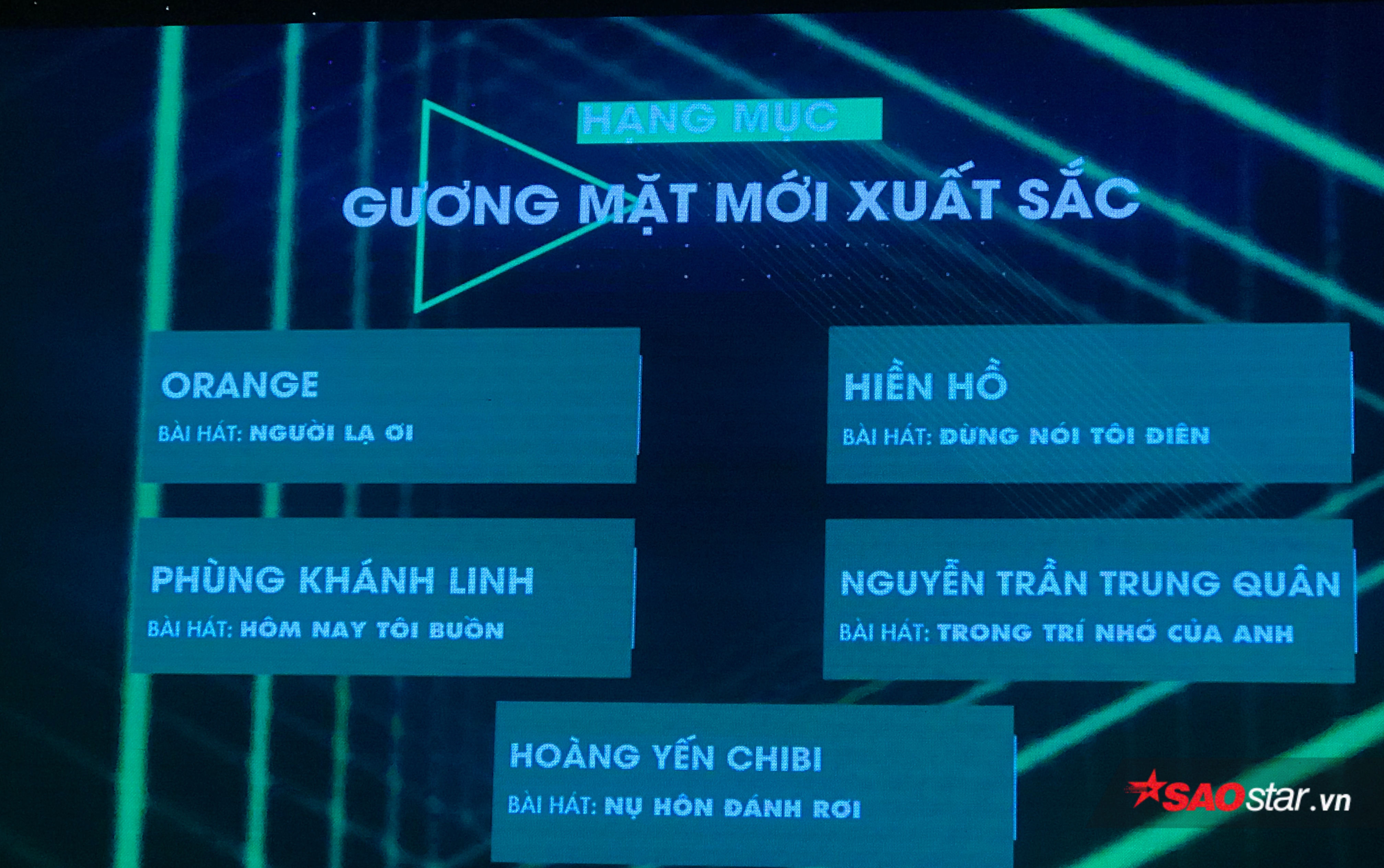 Tuy nhiên, một điều khá ngạc nhiên là cái tên Chi Pu không lọt top đề cử ở hạng mục Gương mặt mới xuất sắc nhất. Mặc dù trong suốt năm qua, kể từ khi cô nàng debut với vai trò ca sĩ đã liên tiếp ra lò nhiều ca khúc gây dậy sóng cộng đồng Vpop.