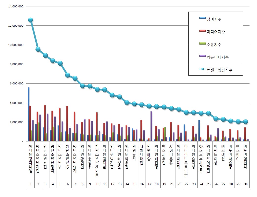 Được biết BXH này được xác định thông qua việc phân tích sự tham gia của người tiêu dùng, mức độ phủ sóng truyền thông và chỉ số nhận thức của cộng đồng với 445 thành viên thuộc các boygroup, dữ liệu được tính từ ngày 14/5 đến 15/6 vừa qua.