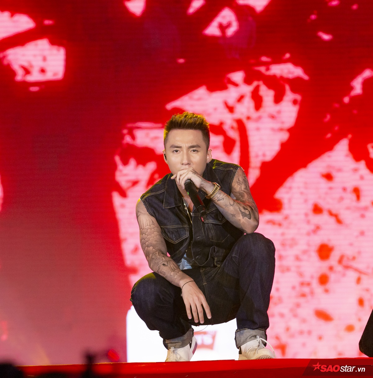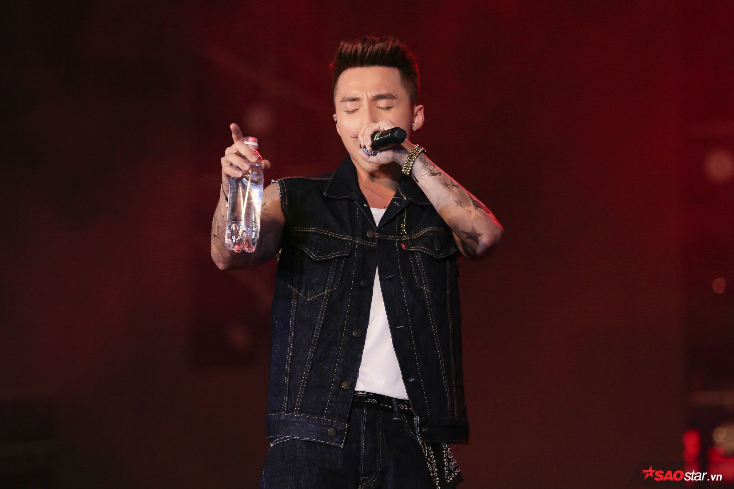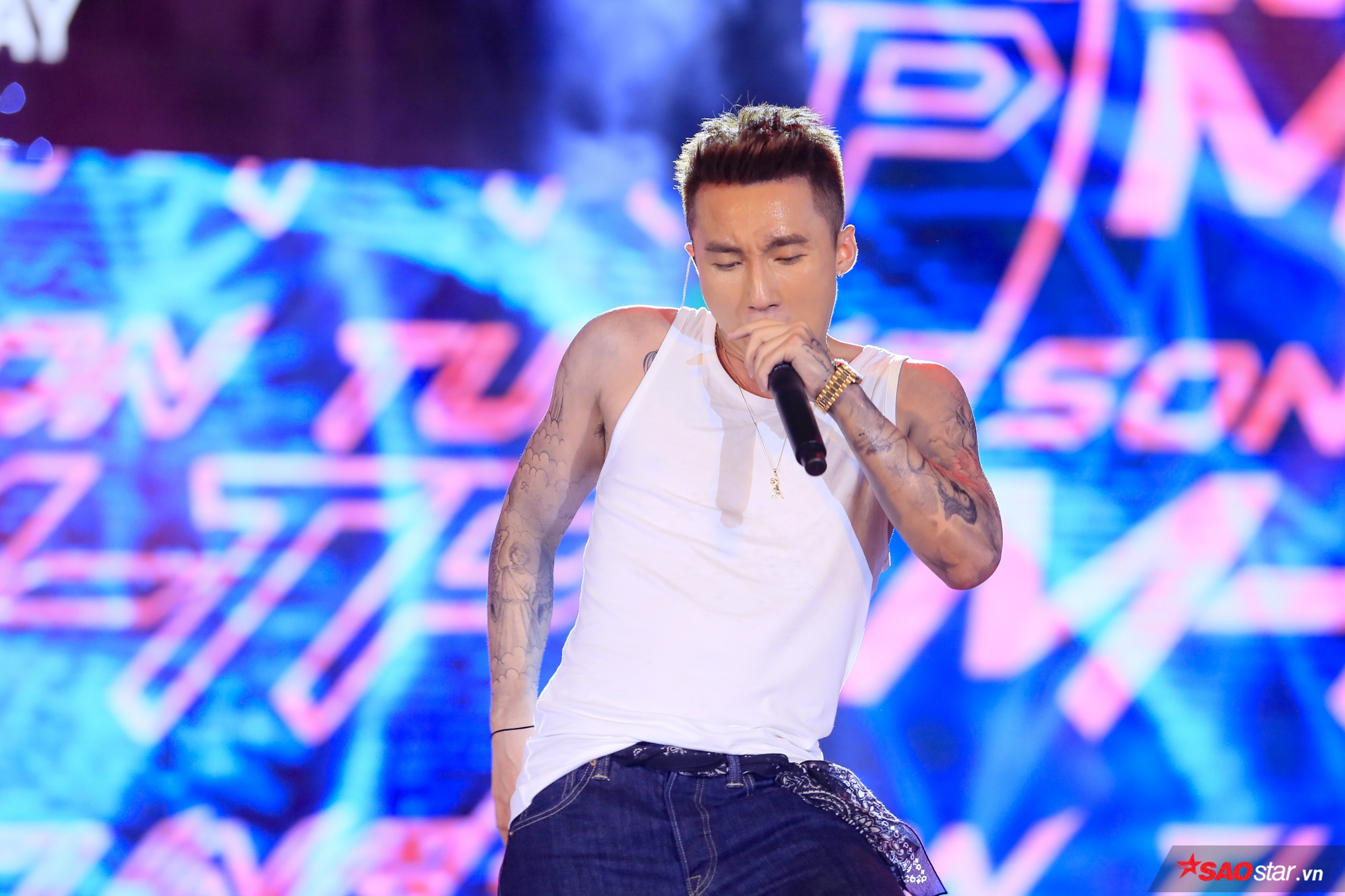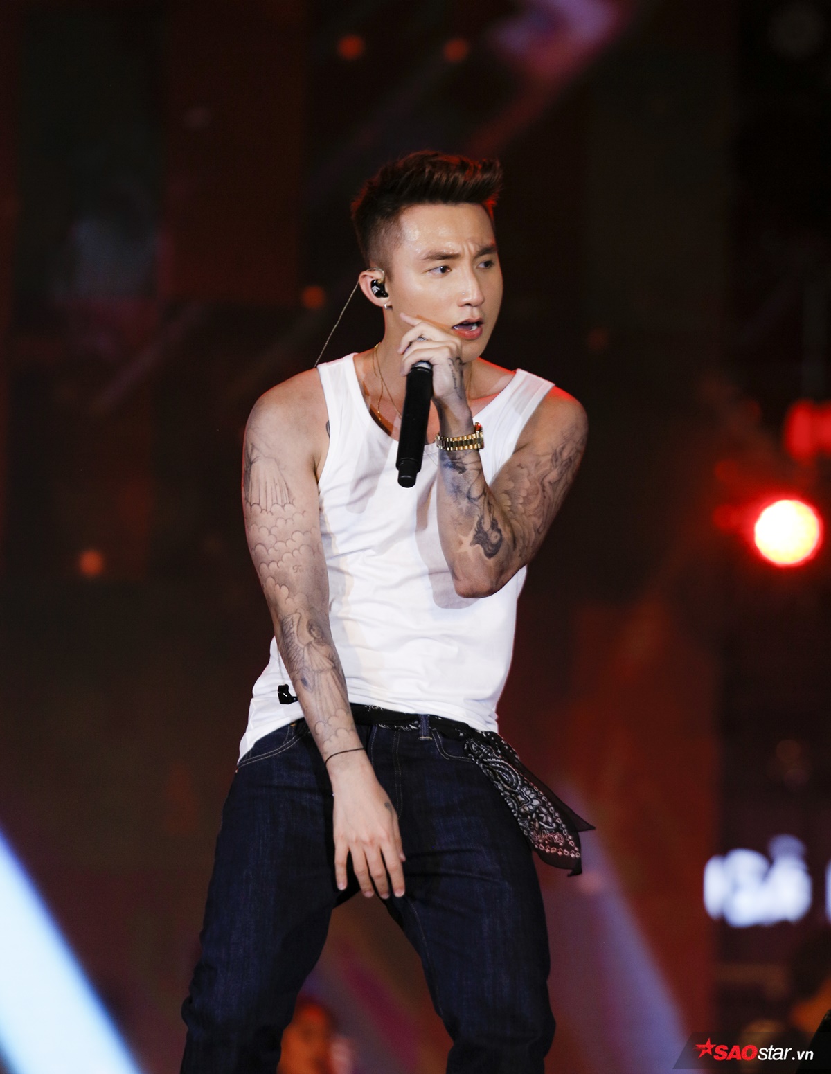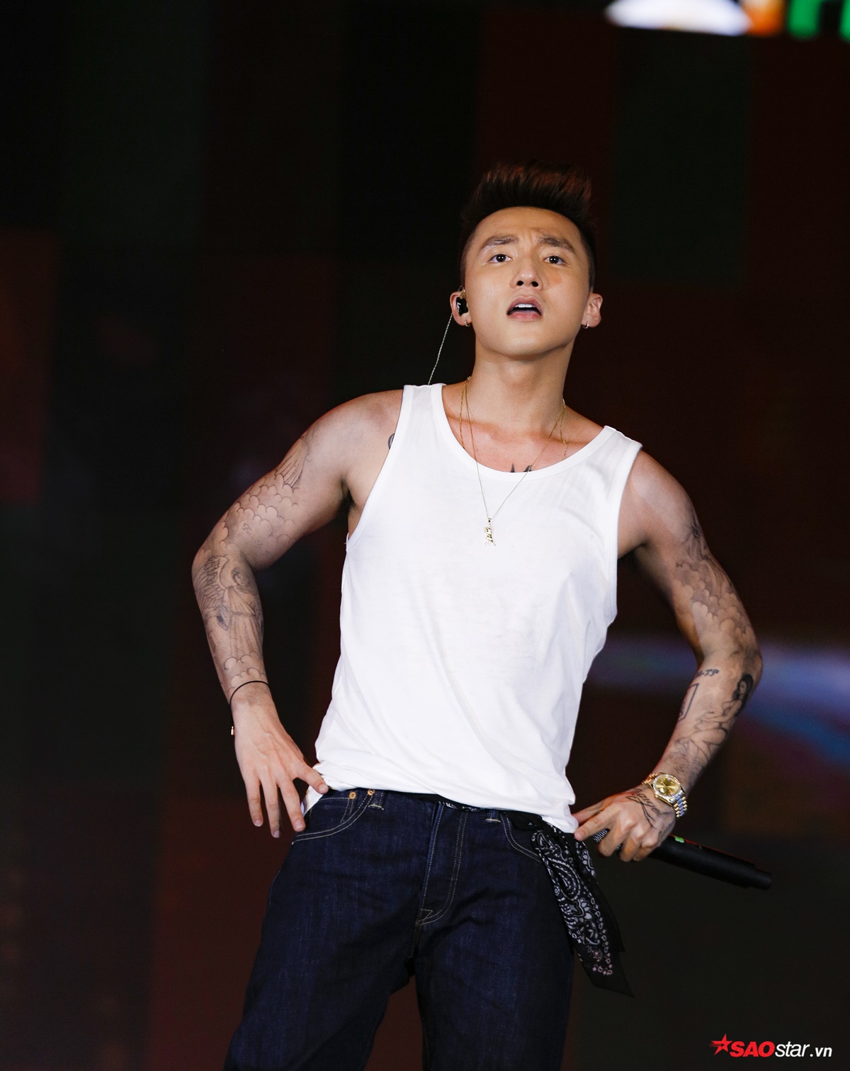 Đặc biệt, phần trình diễn được mong chờ nhất ở cuối chương trình không ai khác chính là Sơn Tùng M-TP. Ngay từ những giây đầu xuất hiện trên sân khấu, nam ca sĩ không khỏi khiến người hâm mộ “tá hỏa” khi 2 cánh tay… được 'xăm” kín. Tuy nhiên, khi nhìn kỹ lại thì các fan đã thở phào nhẹ nhõm bởi anh chàng lại nổi hứng “tha thu” và vẽ lên thôi. Bên cạnh đó, vẫn là một Sơn Tùng khuấy động không khí ở bất cứ đâu, nam ca sĩ mang đến loạt 3 ca khúc hit đình đám của mình là Chạy ngay đi, Lạc trôi và Em của ngày hôm qua khiến khán giả bên dưới hò reo không ngừng.
