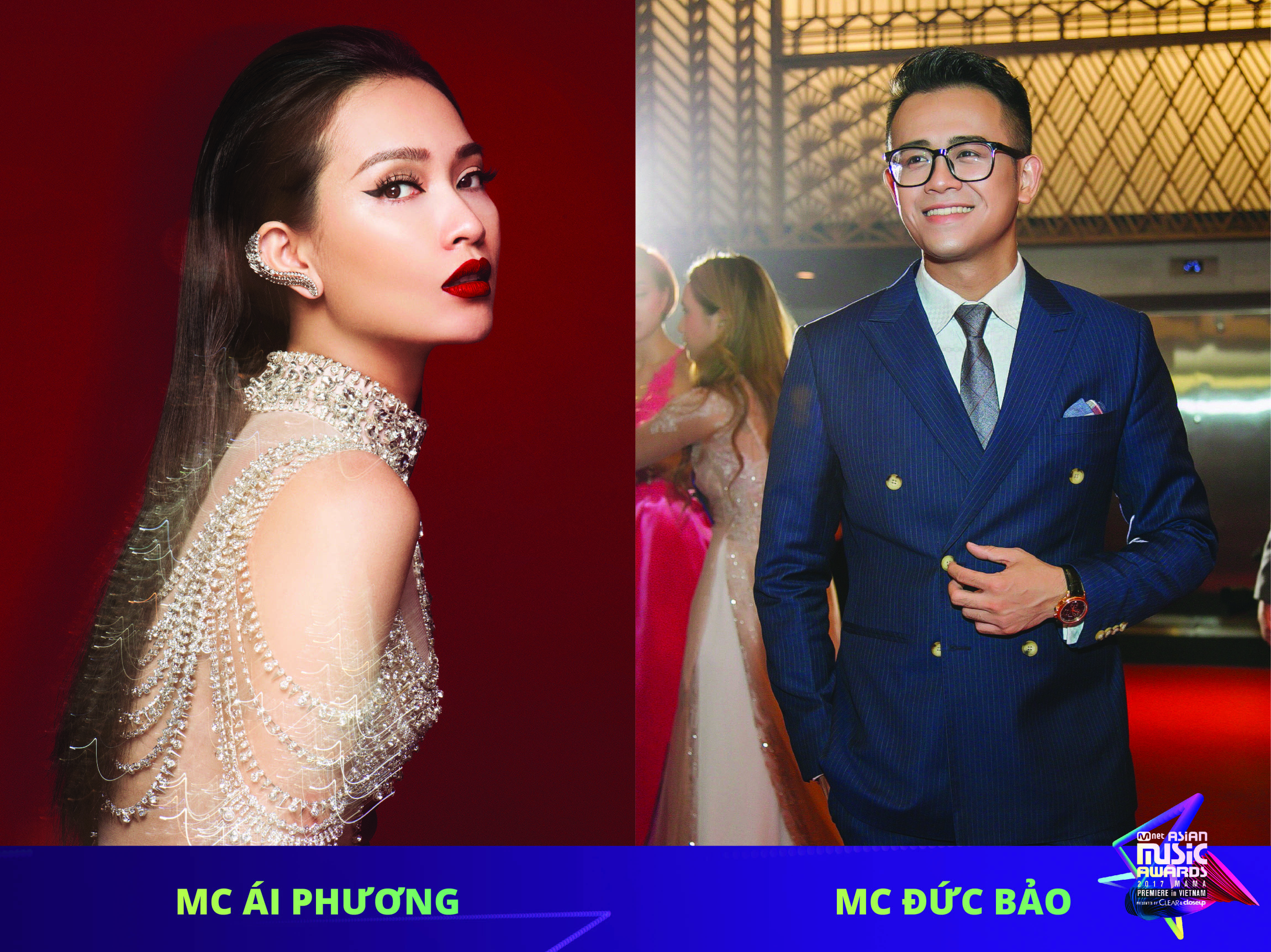 2017 MAMA Premiere in Vietnam sẽ diễn ra tại nhà hát Hòa Bình dưới sự dẫn dắt của hai MC Ái Phương và Đức Bảo. Ngoài các nghệ sĩ Việt Nam, đêm mở màn tuần lễ MAMA 2017 còn có sự góp mặt Wanna One, Seventeen, Kim Samuel - những thần tượng đình đám từ xứ sở Kim chi.