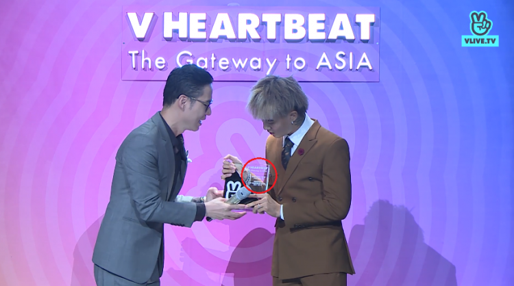 Khoảnh khắc Đạt G nhận cúp đã bị soi ra trên chiếc cúp có đề tên của Sơn Tùng M-TP.